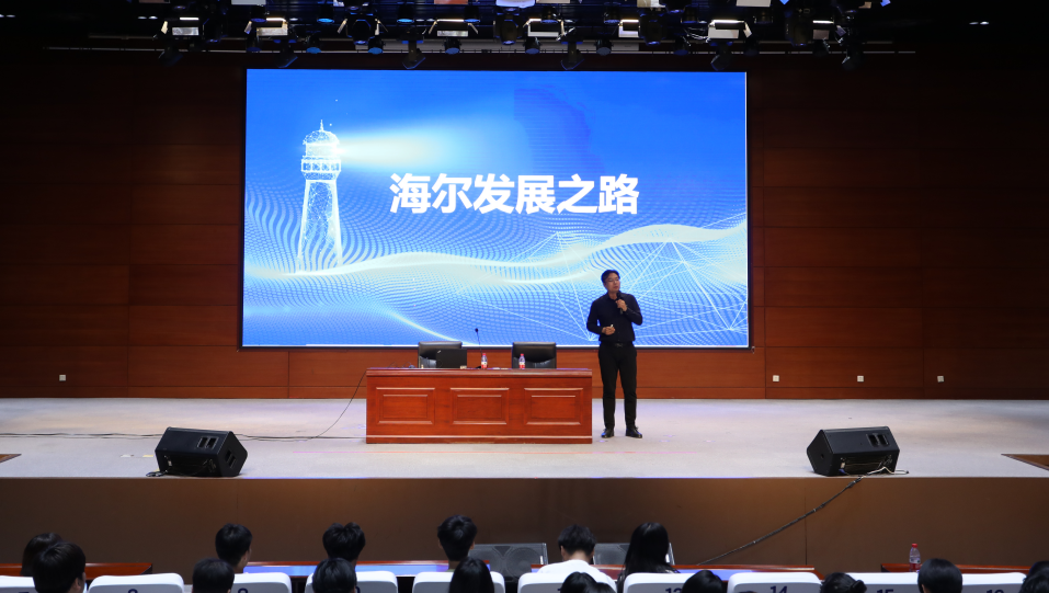 之后,天津海尔洗涤电器有限公司郝兴军总经理从海尔的创业历程、技术创新、市场拓展等多个方面,为我们呈现了一个立体而全面的海尔形象。郝兴军先生以海尔的发展之路为蓝本,详细阐述了企业创新、团队协作和市场拓展的重要性。他以生动的案例和深入的分析,向我们展示了一个优秀企业在面对挑战和变革时所展现出的坚韧和智慧,同时他还强调明确目标、持续学习和积极实践的重要性。他鼓励我们要根据自己的兴趣和优势,制定切实可行的职业规划,并在实践中不断调整和完善。同时,他还提醒我们要保持开放的心态,勇于接受新事物和挑战,不断提升自己的综合素质。
