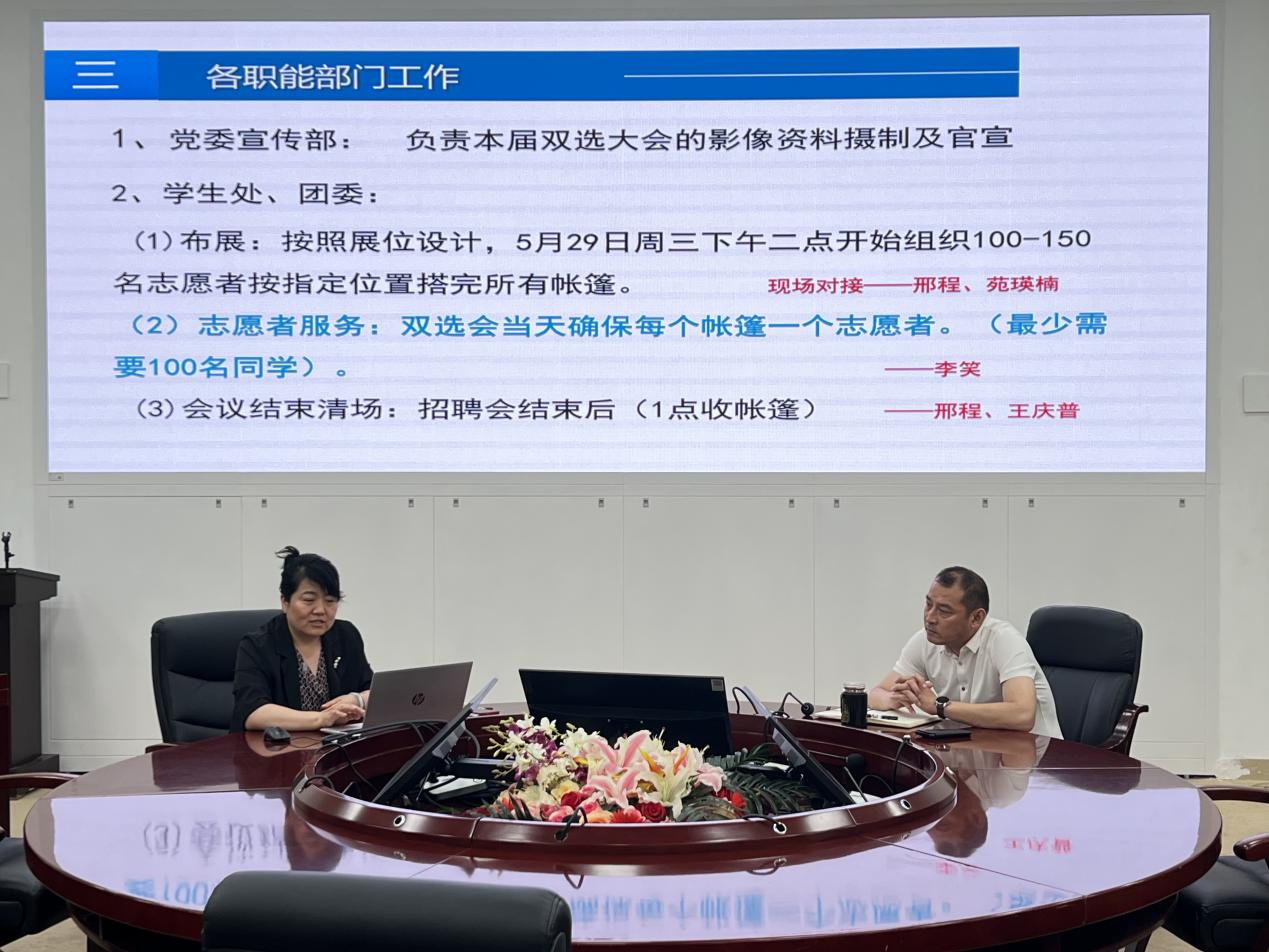 5月22日,学院召开了就业创业工作会议及2024年春季双选会协调会。此次会议旨在全面总结学院就业创业工作进展,布置未来工作重点,并协调即将举行的双选会相关事宜。学院副院长张新鹏出席参会,招生就业指导办公室主任李晓芳主持会议。各二级学院和相关职能部门的负责人也悉数到场,共同为学院的就业创业工作献计献策。