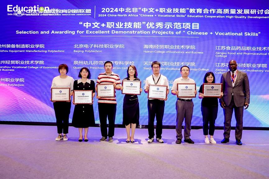 近日,智能工程学院代表学校出席了EducationPlus2024无锡国际职业教育大会暨产教融合博览会,参与大会分论坛中北非“中文+职业技能”教育合作高质量发展研讨会,荣获“职业教育优秀合作单位”、“中文+职业技能”优秀示范项目和中北非职业教育创新合作优秀案例奖项。