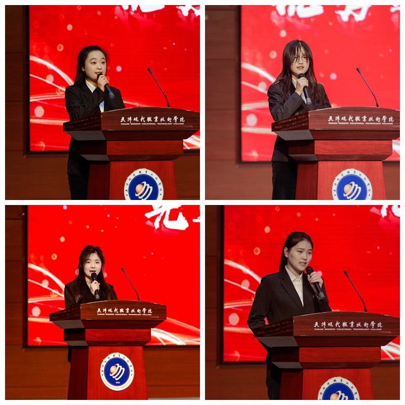 优秀班集体代表王红妍围绕班级建设、思想引领、学风建设、社会实践等方面分享班级的成长故事和经验心得。优秀团学干部代表孟佳从学、思、践、悟4个方面分享了自己丰富的大学学习生活和在学期间的收获。优秀学生代表许世乾、张梦,讲述了他们两年来的成长经历,勉励学弟学妹们秉承“精益求精”校训精神,在学习中努力拼搏,在实践中锻炼自我,在成长中坚定信念,在奋斗中收获属于自己的荣誉,共同为学院的灿烂明天贡献青春力量。