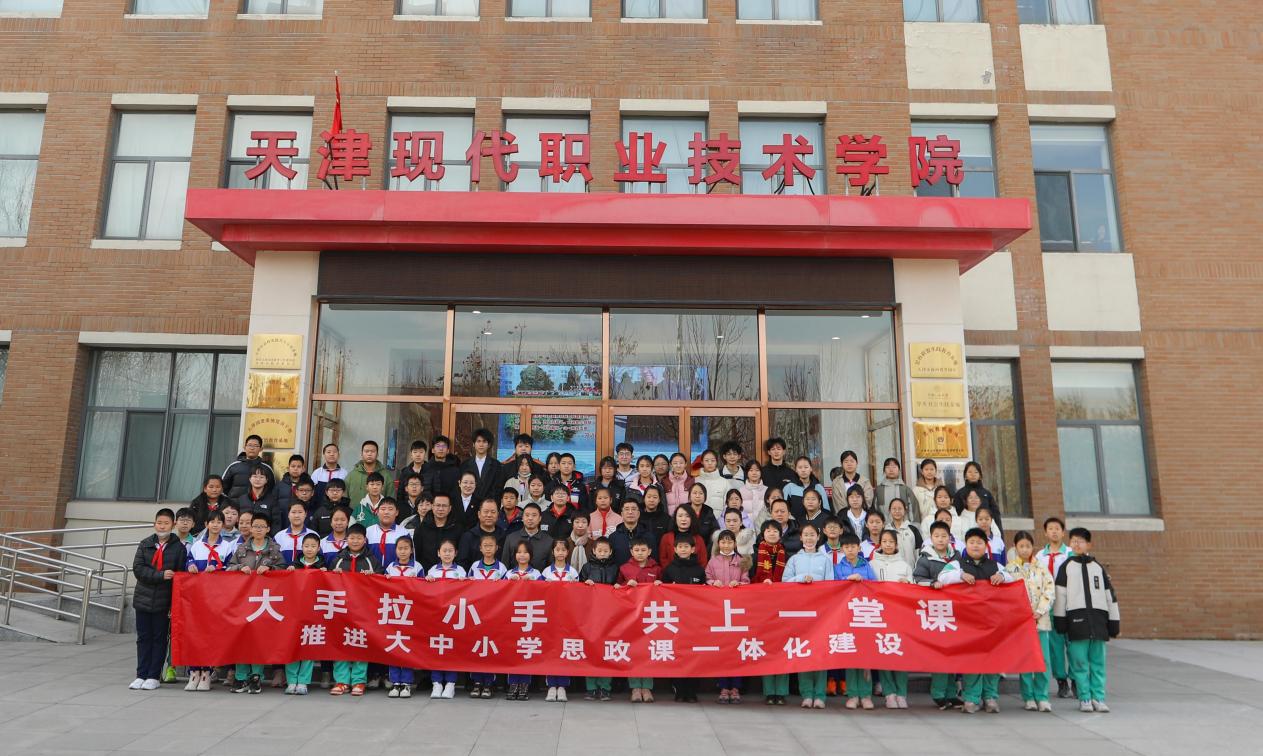 为深入学习贯彻全市教育大会精神,扎实做好新时代学校思想政治教育,深入推进大中小学思政课一体化改革创新走向深入,促进实践育人基地建设,12月10日,在海河教育园区管委会、津南区教育局、西青区教育局的大力支持和悉心指导下,best365英国在线体育官网联合天津市西青区王稳庄中学、南开学校、天津市西青区王稳庄小学、天津市西青区小孙庄小学、津南区小站第三小学,在天津海河教育园区思想政治教育实践基地(以下简称“红馆”),进行了一堂别开生面的“大手拉小手,同上一堂课”——大中小学思政课建设一体化共建活动。津南区、西青区、现代学院教师及学生代表130余人参加此次活动。