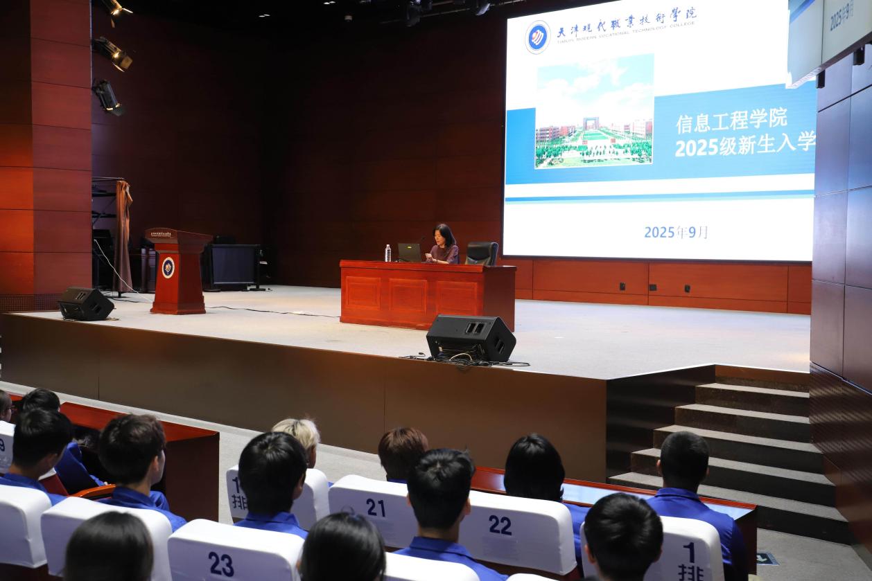 9月17日,信息工程学院2025级新生入学教育大会在学校报告厅召开。学院党总支书记、院长杨美霞,党总支副书记冯泽,辅导员代表及2025级新生共同参与,大会旨在帮助新生快速适应大学生活、明确发展方向,为三年学业成长奠定基础。