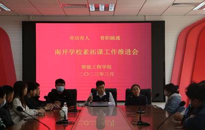 为继续深入开展劳动教育,智能工程学院于3月15日召开了“劳动育人 普职融通”南开学校素拓课工作推进会,党支部副书记陈慧,辅导员苑圆、杨建彪、21级学生干部和主讲学生参加了此次会议。会上,陈慧介绍了智能工程学院劳动育人实践基地建设的背景和意义,并强调学生干部是学生中的佼佼者,应率先参与到劳动育人实践活动中,发挥示范引领作用,从而带动广大学生勤奋学习、励志成才、回馈社会。他还鼓励同学们积极参加志愿服务、创新创业、技能大赛等活动,展现智能学子的激昂风采。最后,辅导员苑圆介绍了劳动育人实践活动的时间、内容、注意事项等,同学们纷纷表示一定会通过自己的切身行动回馈社会,承担自己应尽的责任。