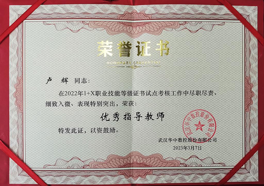 2022年底疫情形势非常严峻的情况下,机电工程学院组织骨干教师队伍提前入住学校,在校连续奋战近一个月,在全面确保师生防疫安全的同时,分工明确职责到位,安全、有序和高效地完成了学生鉴定工作,最终学生取证率达96.6%。根据机电工程学院在鉴定过程和取证率等方面的优异表现,特授予best365英国在线体育官网2022年 “优秀试点院校”称号,机电工程学院卢辉老师荣获“优秀指导老师”称号。