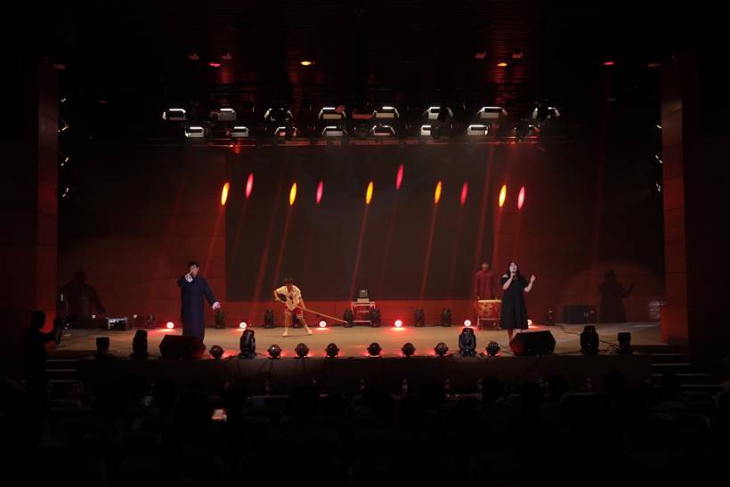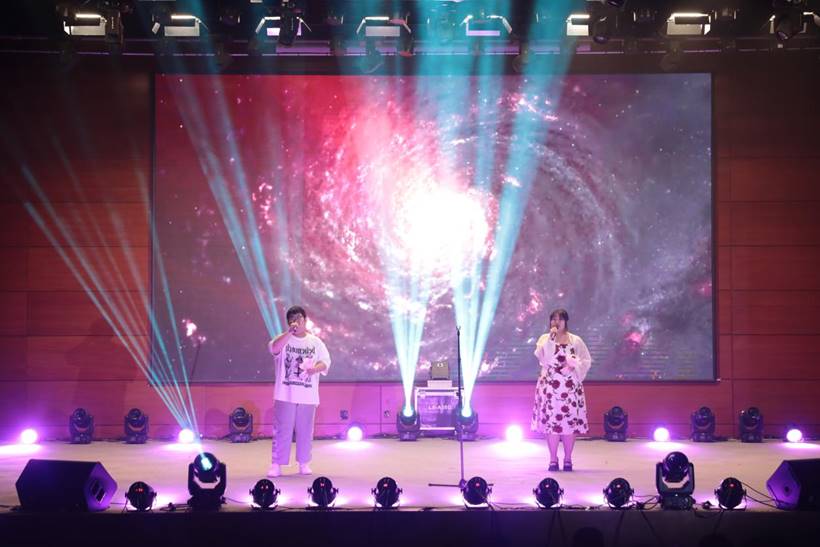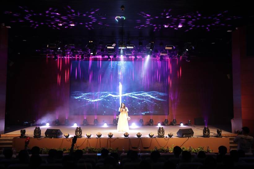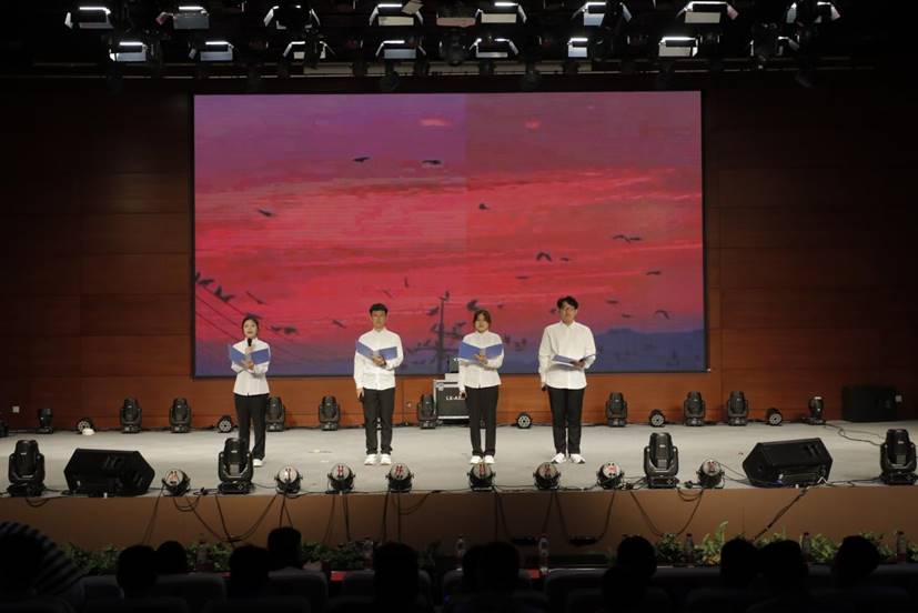 特邀19级优秀毕业生高颢轩与大一学生同台演唱《水星记》以强大的感染力打动了全场观众,大家为之动容,齐声跟唱。