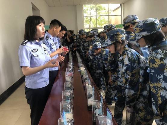 宣讲结束后,滨海戒毒所干警组织同学们现场参观了各类常见毒品的模型展示,进一步告诫同学们如何识别、防范毒品。