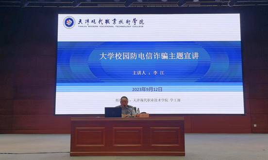 为有效防范电信网络诈骗,帮助师生普及防电信诈骗知识,提高在校师生识骗、防骗能力,进一步维护师生财产安全,拓展防范宣传教育覆盖面,切实减少电信网络诈骗案件发生,努力打造良好的育人环境,9月12日下午学院邀请天津市津南区雅观路派出所社区警务队民警李江来我校举办“大学校园防电信诈骗”安全讲座。