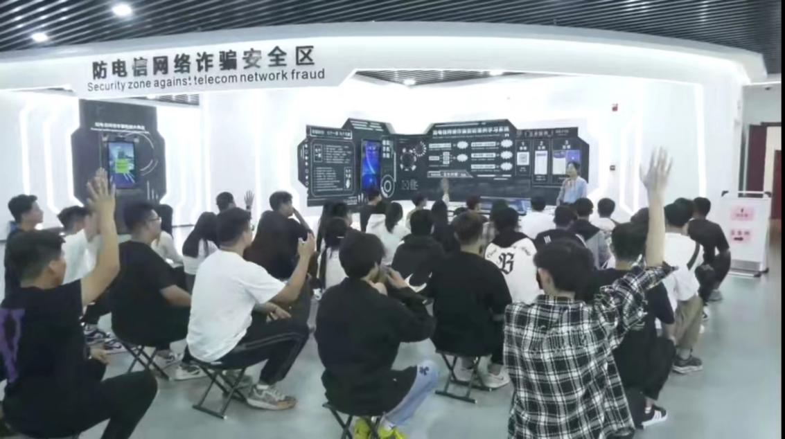 思政课教师充分利用场馆资源,就地取材,组织学生坐马扎上听课,老师通过案例剖析、模拟对比等方式,给学生讲解了防电信诈骗、网络贷款等内容,学生坐在马扎上听得有滋有味。