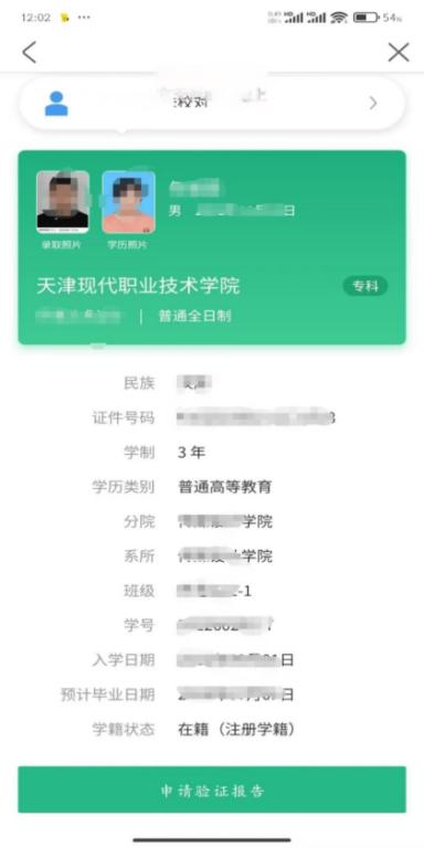 (5)学信网学籍页面截图并加盖二级学院公章,截图样例如下: