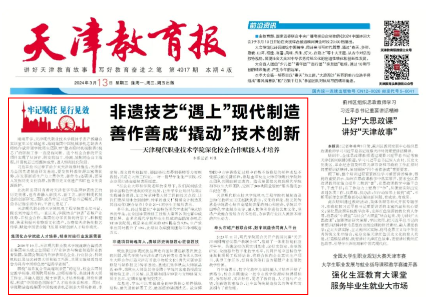 best365英国在线体育官网机电工程学院党支部书记、院长刘仲海介绍,一直以来,学院结合“钟表”市域产业优势,在校企合作、集团化办学优势的背景下,积极挖掘、传承和振兴非物质文化遗产,为赓续天津传统技艺传承、赋能中国表业腾飞发展不断创新人才培养模式。