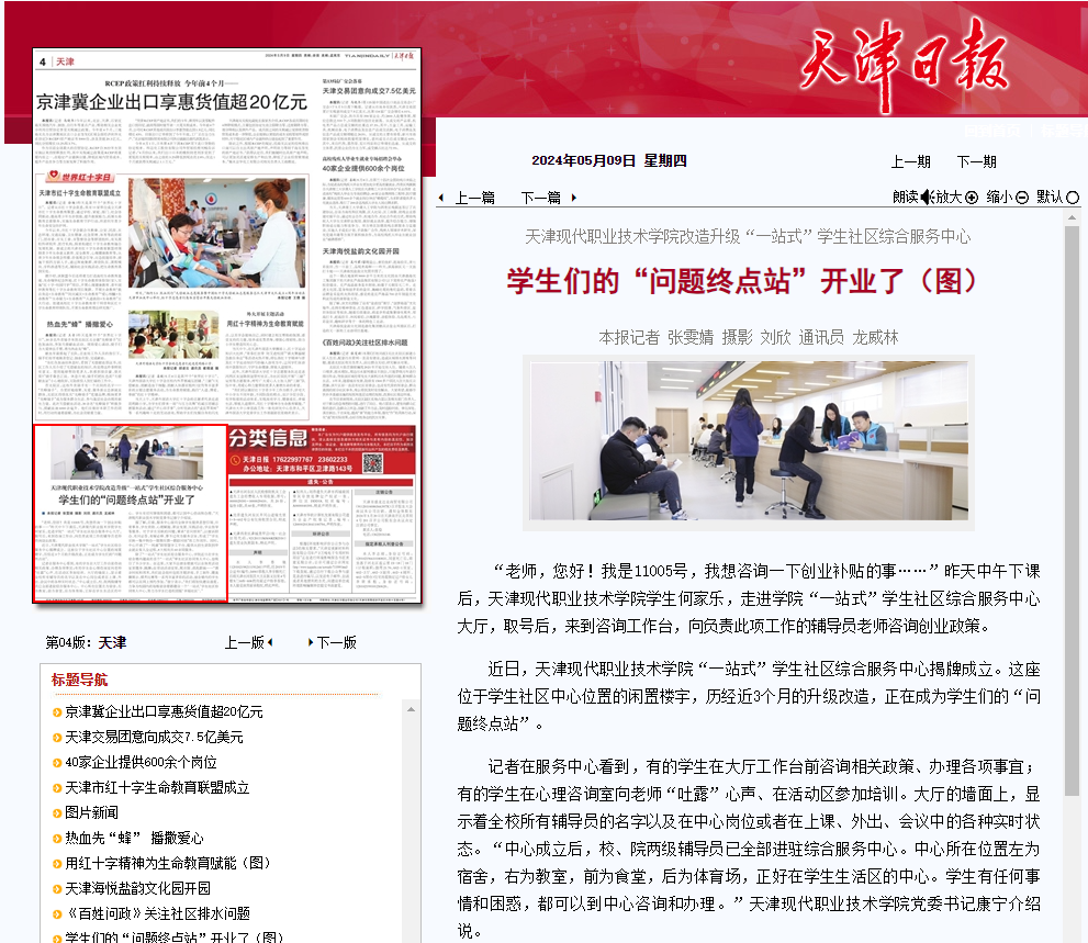 据了解,目前,服务中心面向全体学生提供思想引领、日常事务、学生资助、心理赋能、职业发展、实践活动、学业指导等服务。对于学生反映的问题,秉承“首问原则”,以接诉即办、有问必答、有疑必释、事不过夜为服务宗旨,形成了“学生反映—集中转办—限期反馈—跟踪问效”的工作闭环。同时,中心开通了“一网通”即智慧学工平台,提供从招生录取到毕业就业育人全过程,8大板块共60余项服务。