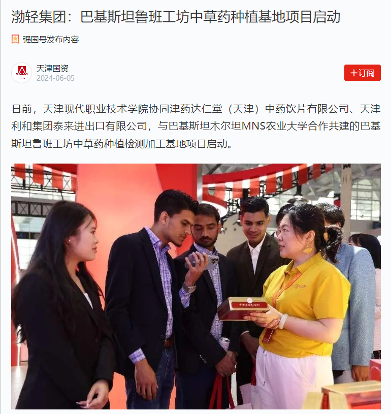 现代学院强化项目产学研紧密合作,聘请达仁堂及生物制药领域专家等担任项目建设产业导师。校企共同构建巴基斯坦中药材种植、中巴中药农业开发模式,积极培养中医药本土化技术人才和文化传播者,形成职业教育助力大国品牌中药饮片国际标准化、中华老字号国际现代化的有效模式,推动巴基斯坦鲁班工坊中医药示范项目建设,为中医药文化走向世界作出应有贡献。