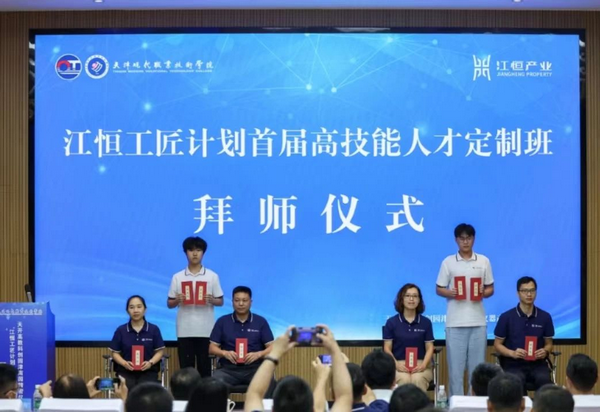 随后,为首届高技能人才定制班的20名学员颁发录取通知书并现场举行了校企“双导师”拜师仪式。