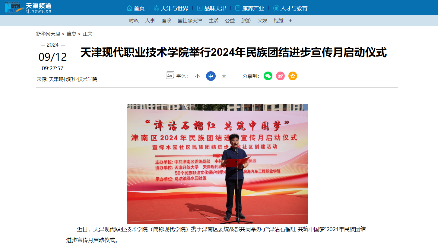 近日,best365英国在线体育官网(简称现代学院)携手津南区委统战部共同举办了“津沽石榴红 共筑中国梦”2024年民族团结进步宣传月启动仪式。