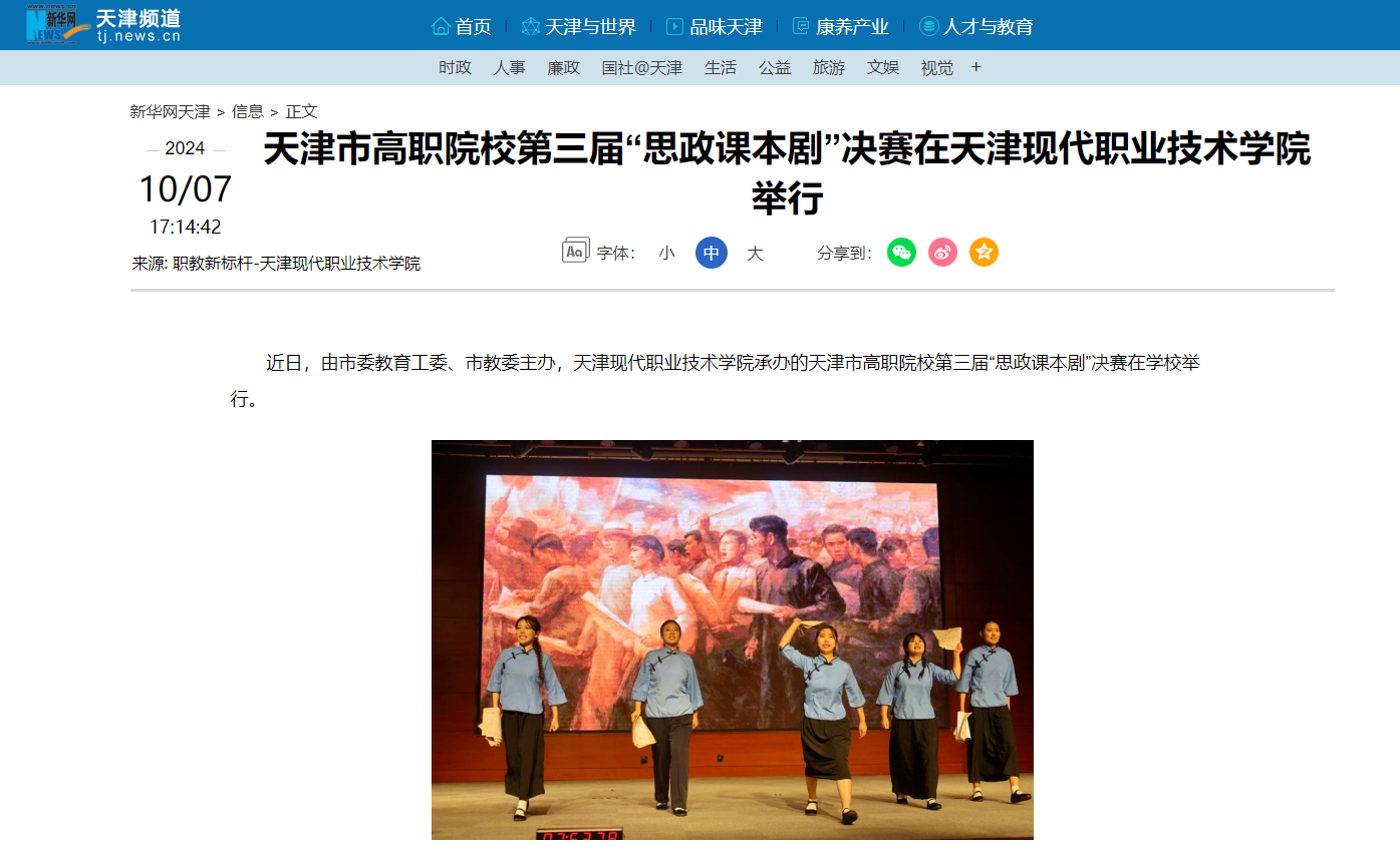 近日,由市委教育工委、市教委主办,best365英国在线体育官网承办的天津市高职院校第三届“思政课本剧”决赛在学校举行。