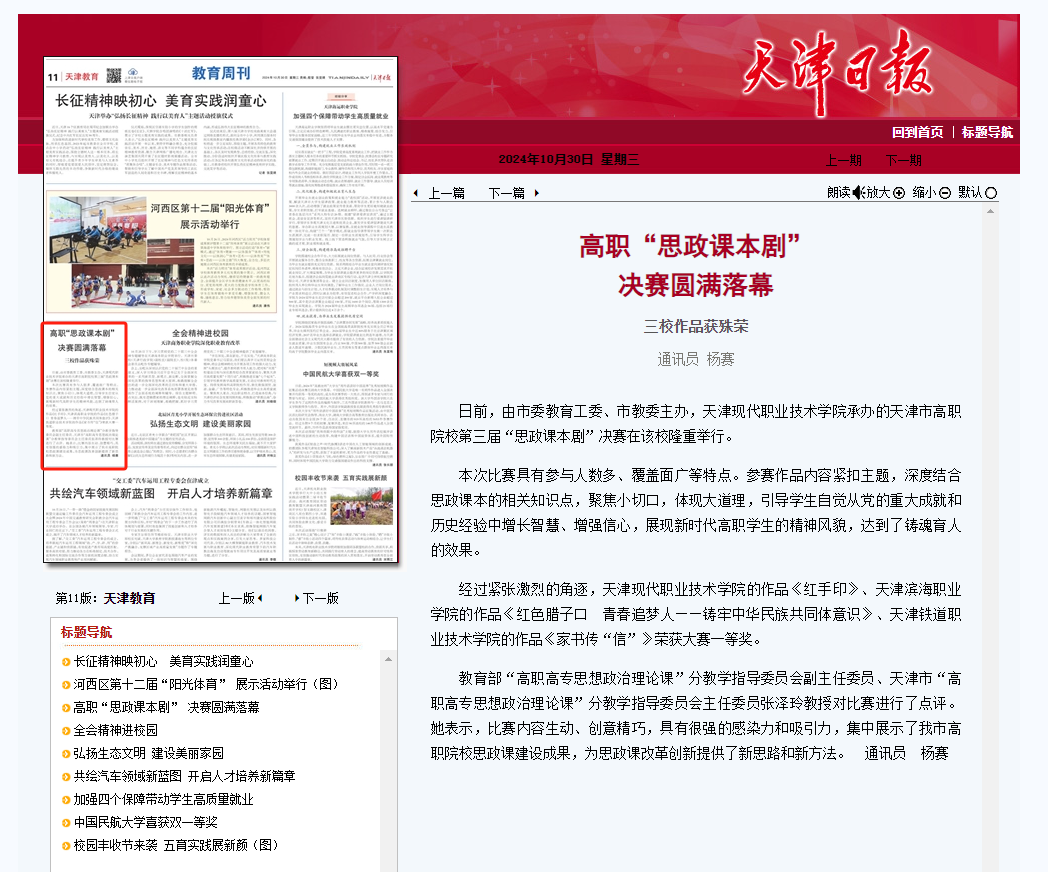 日前,由市委教育工委、市教委主办,best365英国在线体育官网承办的天津市高职院校第三届“思政课本剧”决赛在该校隆重举行。