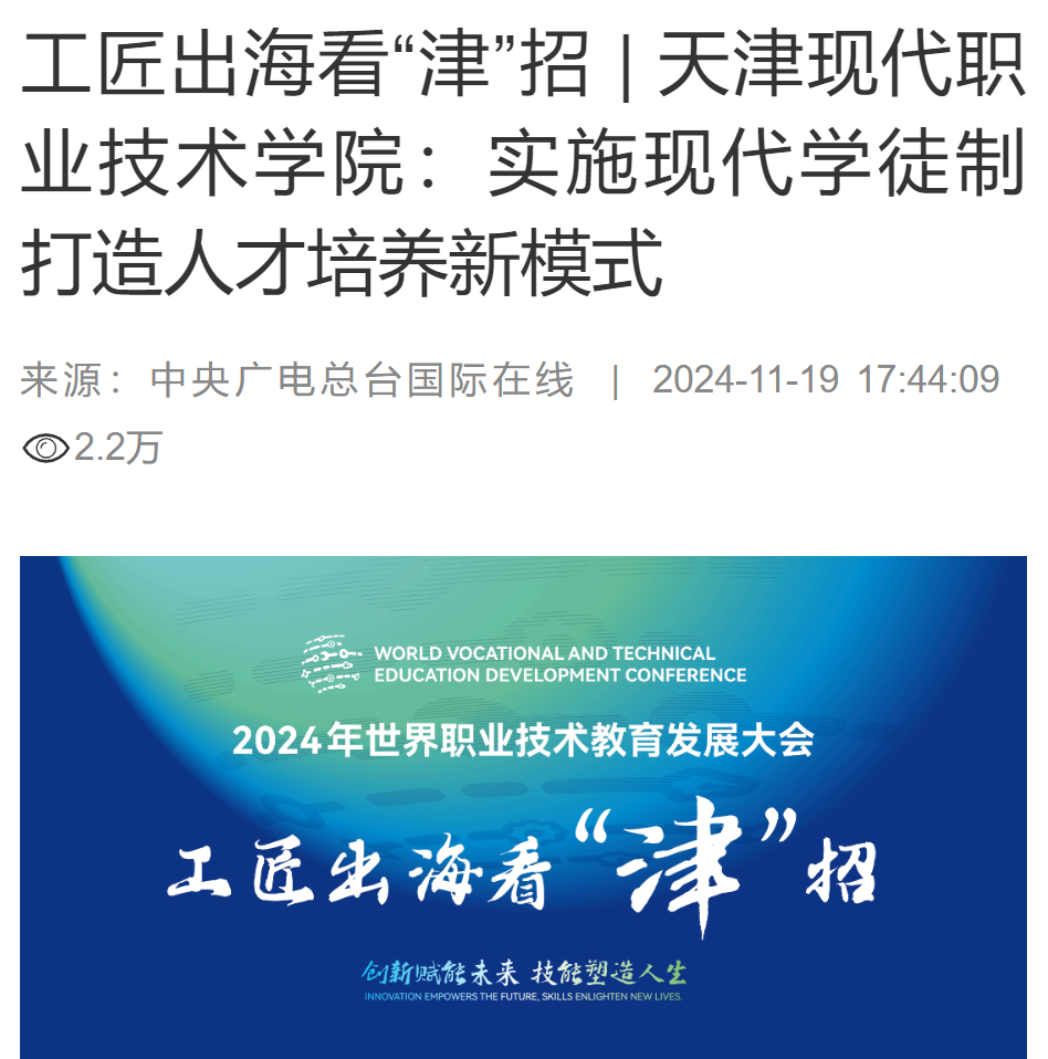 中央广电总台国际在线:工匠出海看“津”招 | best365英国在线体育官网:实施现代学徒制 打造人才培养新模式