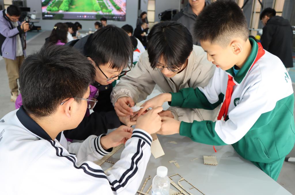 “起飞成功。”当木制无人机起飞那一刻,全场一片欢呼,学生们在零件组合拼装中再次体悟工匠精神的丰富内涵。