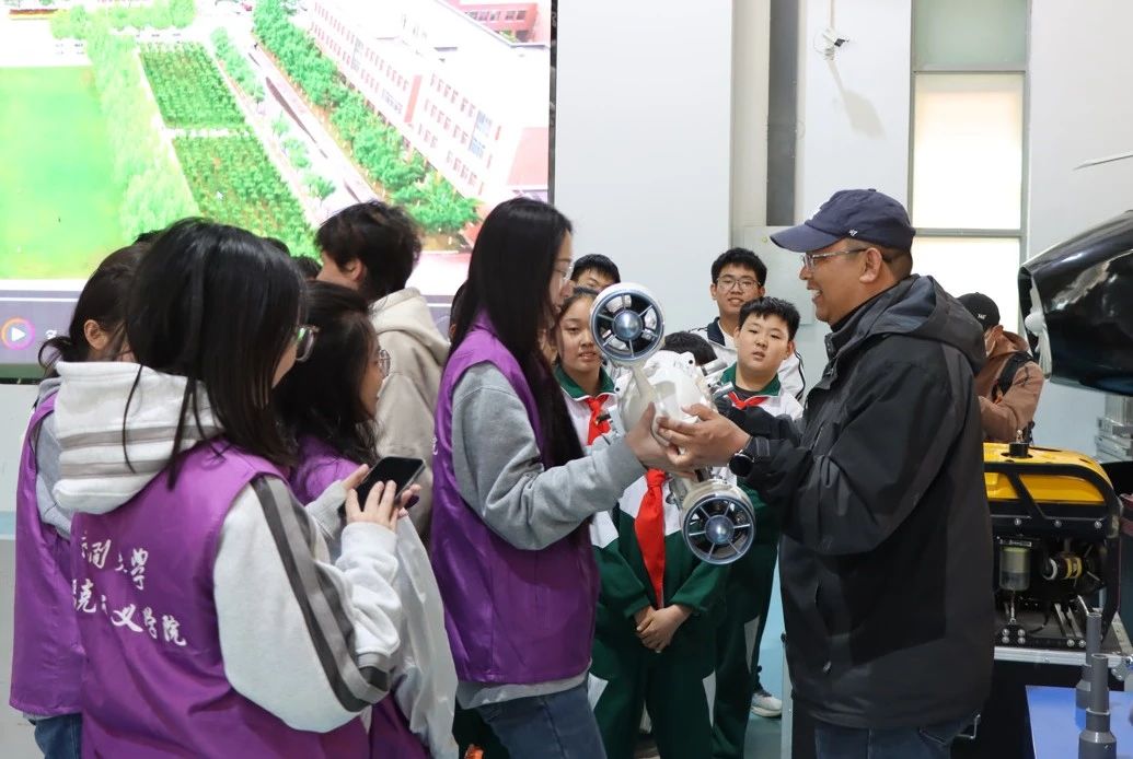 “同学们,知道现在无人机能做哪些工作吗?”“航拍”“播种、撒农药”“还能送快递。”一走进空间智能产教融合实践中心的无人机展厅,大中小学生便被展厅内各种各样的无人机所吸引,讲解老师向同学们介绍了无人机相关的科普知识,以及无人机在农业、消防、安防等领域的应用案例,同学们更直观的了解到科技如何改变生活。