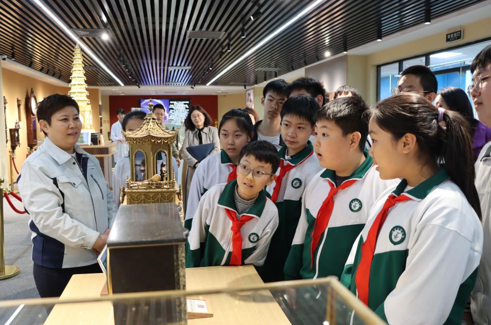 在“钟鸣盛世”非遗传承基地,一座座工艺精湛的古钟表让学生们了解到古董机械钟表不仅是时间的记录者,更是传统工艺的瑰宝。在机械手表装调实训基地,微观机械世界的精致与严谨更是引发了大中小学生们对“工匠精神”的思考。