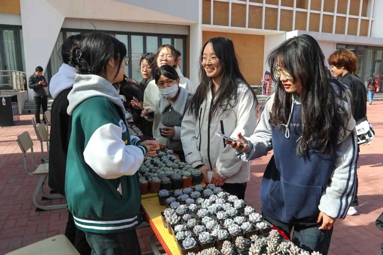 领取到多肉绿植的学生承诺用心养护植物,记录成长点滴。同学们纷纷表示:“领养的不仅是植物,更是一份责任,宿舍有了绿意,生活也多了生机”。青春的朝气与盎然的绿意相互交融,绘就出春日校园里最具活力的画面。