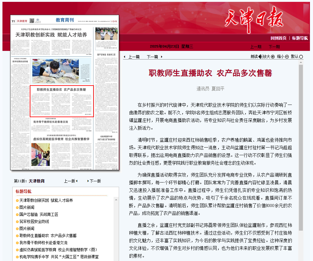 为确保直播活动取得实效,师生团队充分发挥电商专业优势,从农产品调研到直播脚本撰写,每一个环节都精心打磨。团队常常为了完善直播内容忙碌至凌晨,清晨又迅速投入播前准备工作中。直播过程中,师生们凭借扎实的专业知识和饱满的热情,生动展示了农产品的特点与优势,吸引了千余名观众在线观看。直播间订单不断,产品多次售罄。清明前后,师生团队累计帮助盆罐庄村销售了价值8000余元的农产品,成功拓宽了农产品的销售渠道。