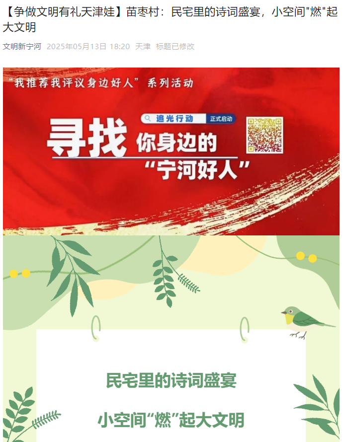 活动以“赏中华诗词、品文化之美、寻文化基因、强文化自信,争做文明有礼天津人”为主题,设置了诗词接龙、飞花令等九个竞赛环节。来自苗枣村及周边村庄的40名各个年龄段的选手组成八支队伍参赛,年龄最小的选手仅5岁。本届诗词大会恰逢母亲节,“谁言寸草心,报得三春晖”等饱含深情的诗句,让诗词的雅韵与母爱的温情完美邂逅。这不仅是一场文化的盛宴,更是一次对母爱的深情致敬。
