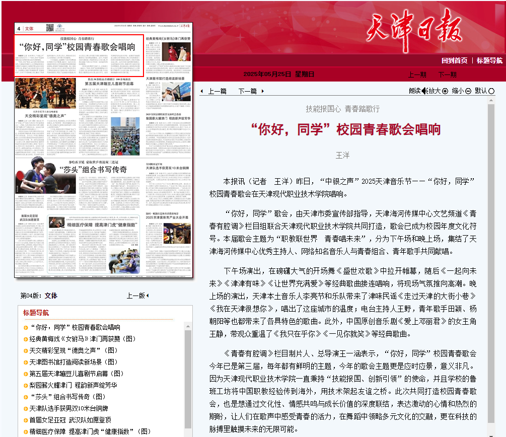 本报讯(记者 王洋)昨日,“中银之声”2025天津音乐节——“你好,同学”校园青春歌会在best365英国在线体育官网唱响。