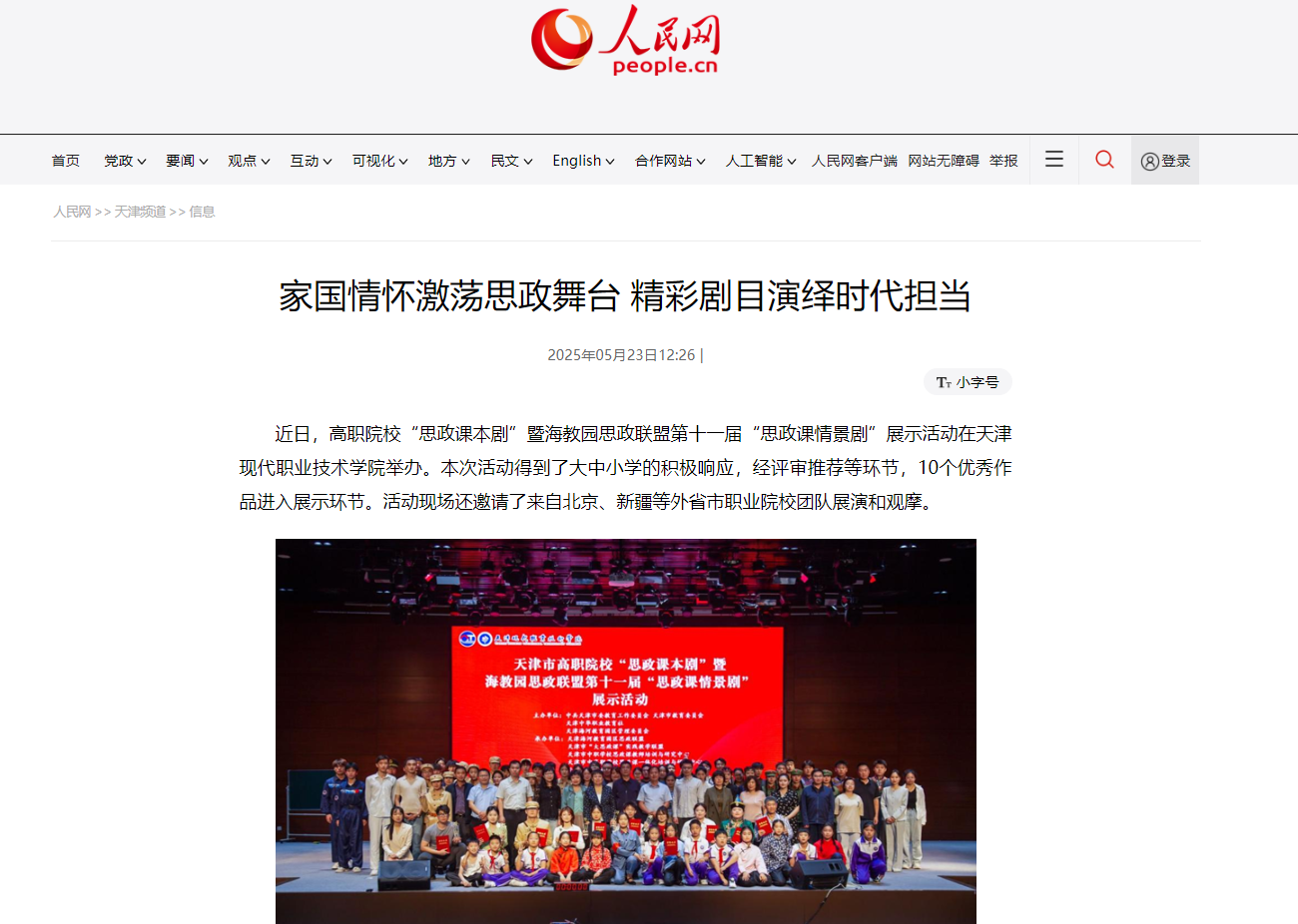 近日,高职院校“思政课本剧”暨海教园思政联盟第十一届“思政课情景剧”展示活动在best365英国在线体育官网举办。本次活动得到了大中小学的积极响应,经评审推荐等环节,10个优秀作品进入展示环节。活动现场还邀请了来自北京、新疆等外省市职业院校团队展演和观摩。