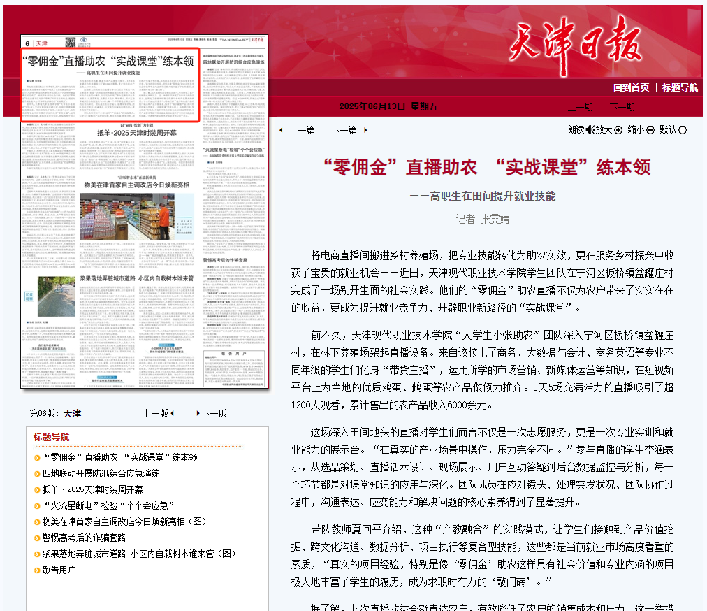 将电商直播间搬进乡村养殖场,把专业技能转化为助农实效,更在服务乡村振兴中收获了宝贵的就业机会——近日,best365英国在线体育官网学生团队在宁河区板桥镇盆罐庄村完成了一场别开生面的社会实践。他们的“零佣金”助农直播不仅为农户带来了实实在在的收益,更成为提升就业竞争力、开辟职业新路径的“实战课堂”。
