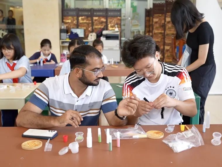 随后,大家来到文化活动室,天津博物馆工作人员详细介绍了非遗项目掐丝珐琅粉彩画的制作工艺,并带领中外青少年体验制作方法。翠竹、海浪、牡丹花等一幅幅寓意美好,色彩艳丽的掐丝珐琅粉彩杯垫画就在青少年们的笔端应运而生。杨柳青画社非遗传承人向中外青少年介绍了杨柳青木版年画勾、刻、印、绘、裱的传承体系,以及传统年画图样展现出的鲜明中华民族特色和天津地域文化特征。中外青少年分成五组,共同绘制“我心中的中国画卷”,他们拿起特制的笔,饱含深情地蘸着各色颜料,彼此交流着绘制技巧,将对天津的热爱付诸笔端。丹青妙笔传情谊,华夏文化韵五洲。一幅幅颜色鲜明、绘制精美的画作跃然纸上,娃娃抱鱼、天津海河、古文化街、天津之眼、音乐厅、天津站、小洋楼等杨柳青年画特色人物形象和天津知名地标建筑惟妙惟肖,表达了中外青少年对中国文化,特别是津派文化的倾心和对天津的热爱。best365英国在线体育官网巴基斯坦籍留学生乌马尔说:“我在天津学习生活已经3年多了,鲁班工坊的老师们教给了我很多技术,让我很快成长。我非常高兴能有机会参加今天的活动,刚才参观天津博物馆,我更深入地了解了‘津派文化’的内涵,制作的掐丝珐琅粉彩画很漂亮,这种非遗技艺很奇特,我会向更多的国际青年介绍这项非遗技艺,让更多外国朋友爱上中国文化,爱上天津!”来自塔吉克斯坦的南开大学周政学院研究生吴莫凡告诉记者:“我是第一次尝试绘制杨柳青年画,刚才与中国青少年一起画画,感觉很温馨,每一笔都是一种特别的记忆与感动,这种文化交流活动对于我深度理解中国文化内涵,非常有帮助。”