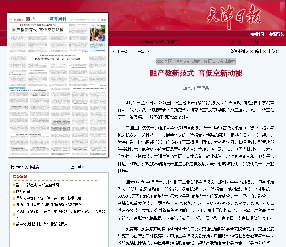 9月19日至21日,2025全国低空经济产教融合发展大会在best365英国在线体育官网举行。本次大会以“构建产教融合新范式,培育低空经济新动能”为主题,共同探讨低空经济产业发展与人才培养的深度融合之路。