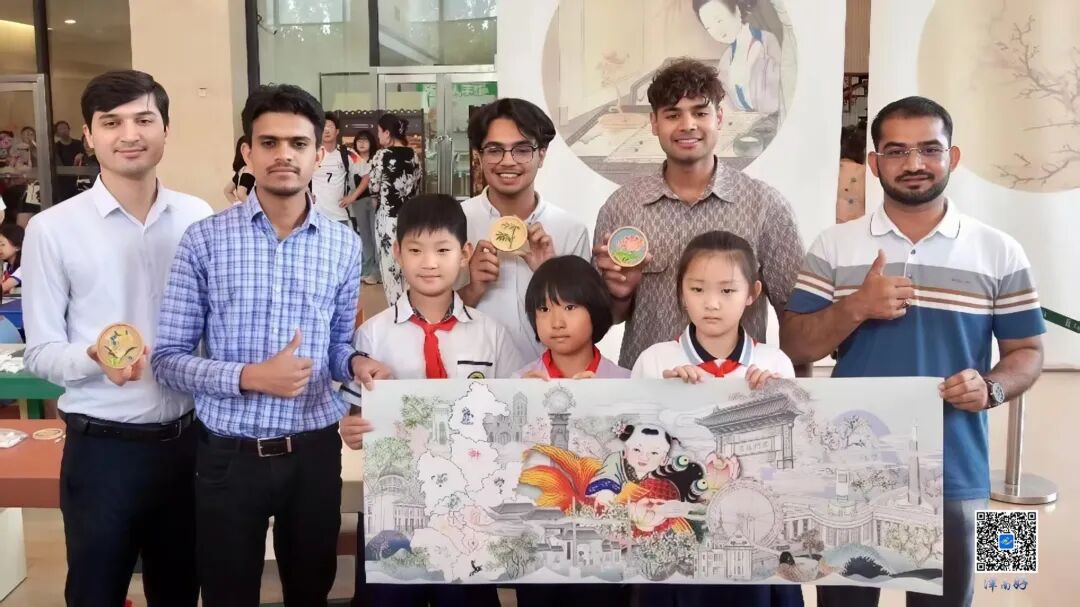 穆杉(左三)参加“‘上合有约 津彩非遗’2025国际青少年天津文旅行”活动