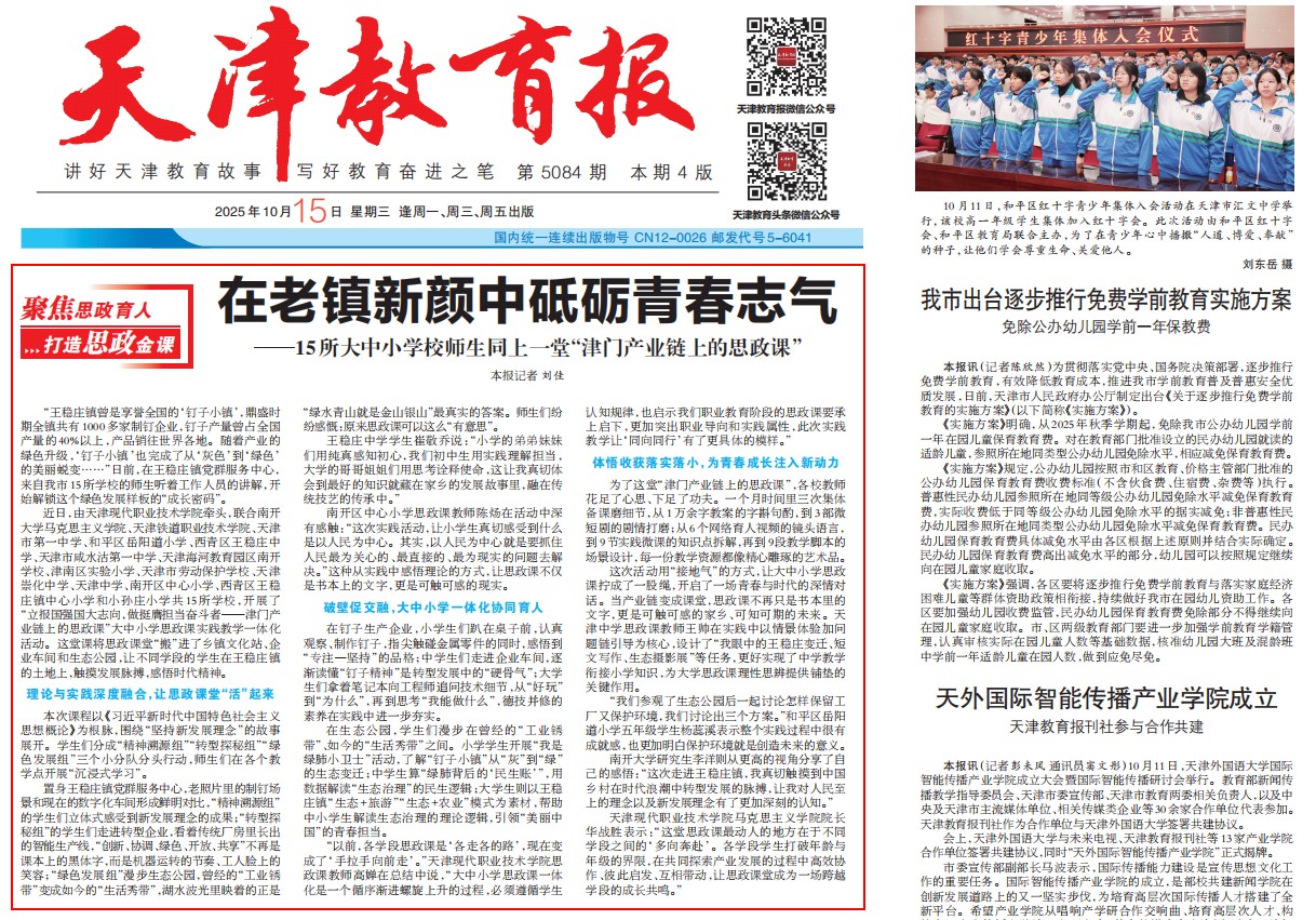 ——15所大中小学校师生同上一堂“津门产业链上的思政课”
